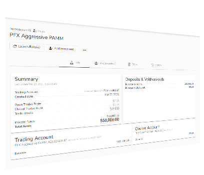 Manajer Keuangan dapat mengontrol beberapa akun PAMM dari satu titik akses dan memungkinkan Anda menjalankan berbagai strategi investasi pada waktu yang sama.