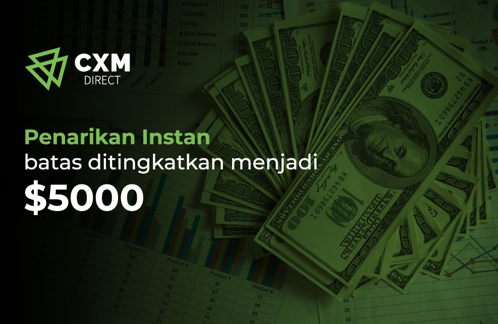 CXM Direct, broker yang handal, baru-baru ini mengumumkan peningkatan batas Penarikan Instan menjadi $5000 per hari. Penarikan Instan, fitur yang memungkinkan klien untuk menarik dana secara instan dari akun trading mereka, sebelumnya dibatasi hingga $1000. Batasnya sekarang telah berubah. Klien sekarang dapat menarik uang mereka dengan batas yang lebih tinggi hingga $5000 per hari.