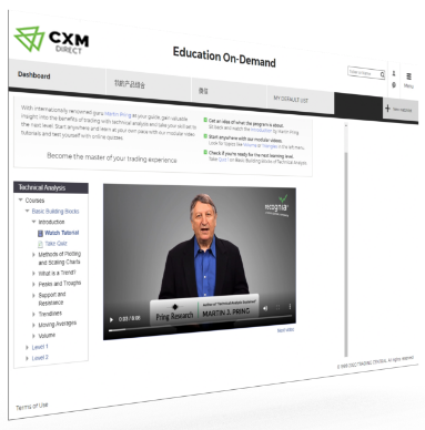 Platform Riset Trading Central tersedia untuk setiap klien CXM yang memiliki akses ke internet. Misi aplikasi berbasis web adalah memperbarui tingkat teknis, target, dan kerangka waktu untuk semua aset. Analisis teknis dan pandangan analis tentang berbagai topik perdagangan selalu hanya dengan sekali klik, tersedia melalui portal yang berdiri sendiri dan langsung di platform MT4 CXM, memberi Anda informasi setiap langkahnya.