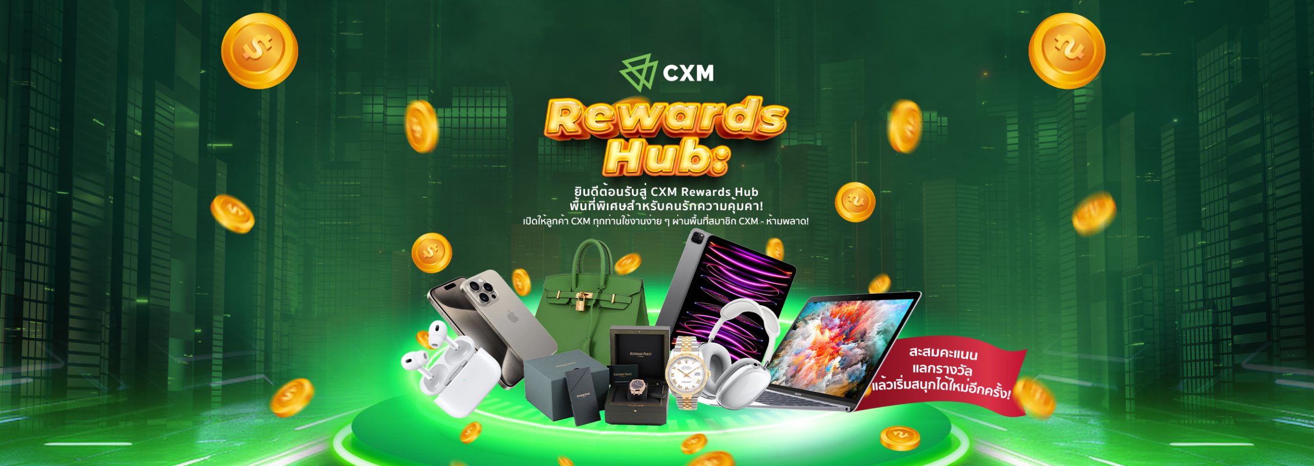 เรารู้สึกตื่นเต้นอย่างยิ่งที่ได้แนะนำ โปรแกรมสะสมคะแนน CXM อย่างเป็นทางการ โปรแกรมพิเศษที่ออกแบบมาเพื่อมอบรางวัลให้กับลูกค้าและพาร์ทเนอร์ที่มีค่าของเรา ทุกการเทรดที่มีสิทธิ์จะช่วยให้คุณสะสมคะแนนเพื่อนำไปแลกของรางวัลสุดพิเศษ เงินสด และสิ่งอื่นๆ อีกมากมาย
