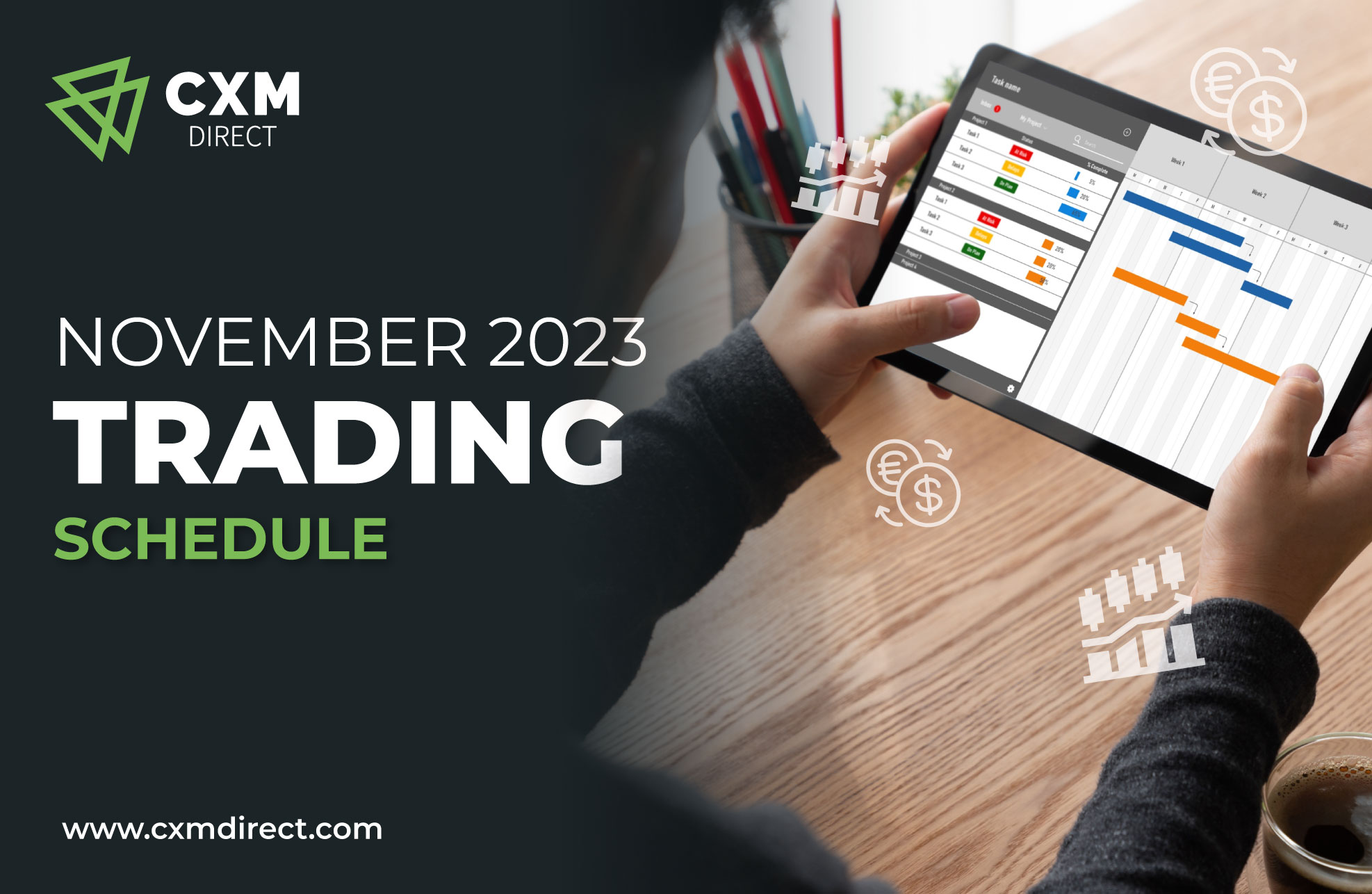 ตารางการเทรดของเราในเดือนพฤศจิกายน 2023 มีดังนี้เพื่อช่วยคุณวางแผนการเทรด: